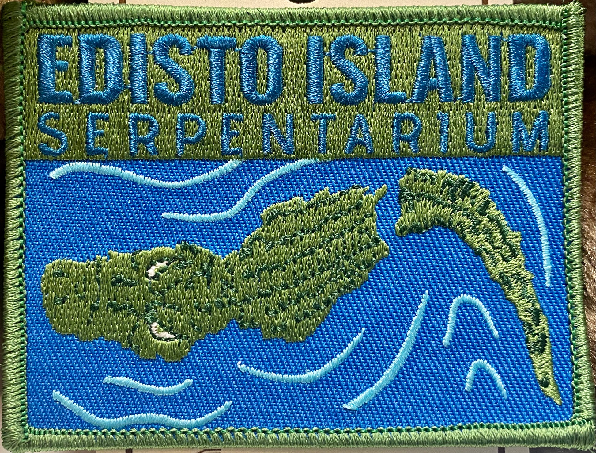 Alligator logo Edisto Island Serpentarium iron on/sew on patch.